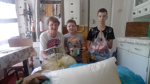Die Menschen wenden sich an unsere Mitarbeiter, um Hilfe zu erhalten. Wir bringen ihnen Lebensmittel, Kleidung, Geschirr, Decken, Möbel, Matratzen und Fahrräder.