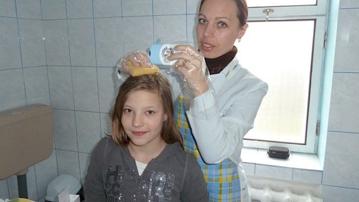Ein riesiges Problem in der Ukraine, nicht nur in unserer Missionsarbeit, sind Läuse. Im Kindergarten, in der Schule und auch in den Familien werden Läuse übertragen. Die Schlange vor der Krankenstation von Olga Schumilo wird immer länger, Jungen und Mädchen, die das Jucken kaum noch aushalten.Läuse sind aber nur ein kleiner Teil unserer Frustration. Wir helfen unseren Kindern in einem Bereich, doch dann kommen sie am Abend, am Wochenende oder in den langen Sommerferien wieder in ein Umfeld zurück, das vieles, was wir aufgebaut haben, wieder zerstört. Da ist es wichtig, dass unsere Mitarbeiter nicht entmutigt sind, dass sie immer wieder die Kraft haben nach einem Rückschlag wieder von vorne zu beginnen.
